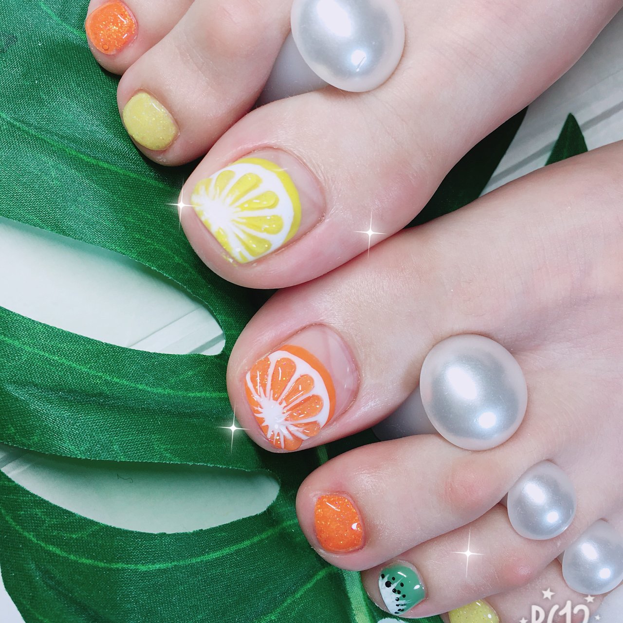 フルーツネイル オレンジネイル レモンネイル フットネイル Style Nail Stella所属 スタイルネイルステラ Marikominoの ネイルデザイン ミニモ